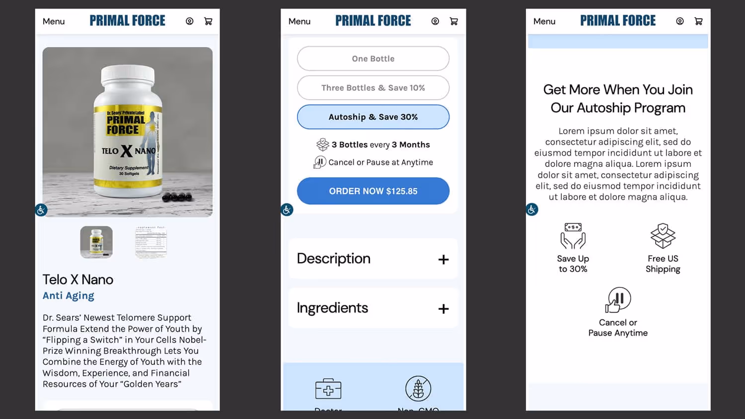 The project's primary goal was to revamp their outdated website, enhancing its appeal and functionality. This involved modernizing the design to align with current trends and technologies. Additionally, the focus was on improving the website's usability, making it more intuitive for existing customers to navigate and explore. A key objective was to attract new customers to the brand by creating a more engaging online presence. The redesign also aimed to strengthen the alignment with the brand identity and Dr. Sears' reputation in the anti-aging field. A responsive design approach was adopted to ensure the website performed seamlessly across various devices. Throughout the project, a collaborative approach was maintained, with close coordination between Olds, and Britecode to ensure all objectives were met effectively.